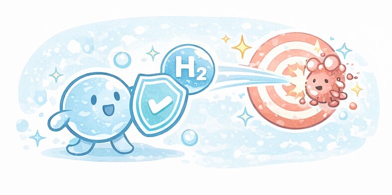 水素は、化学的に非常に小さく軽い分子で、私たちの体に入りやすい性質を持っています。
